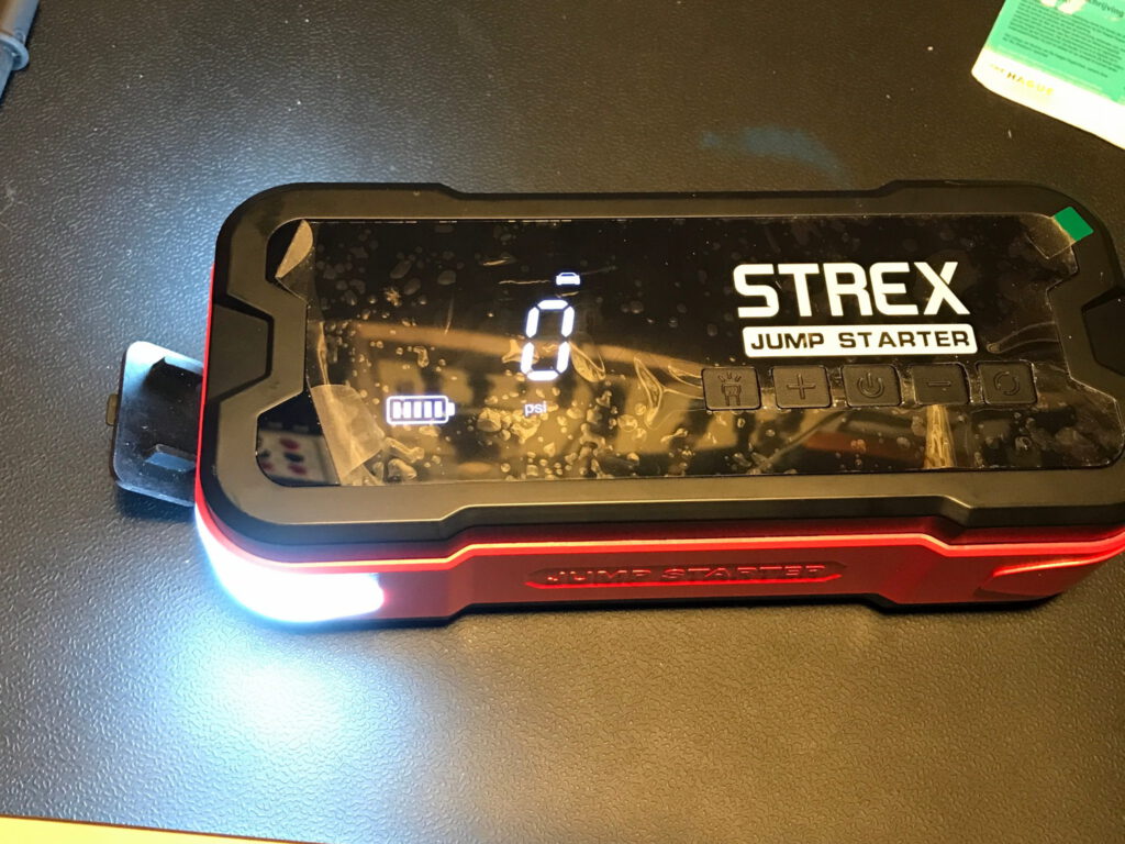 - Toen ik probeerde de jumpstarter op te laden, gaf deze wel een laadindicatie. Bij loskoppelen verdween de laadindicatie. De zaklamp-functie werkte niet, indrukken van de knop deed niks. De bandenpompfunctie werkte niet, de pomp ging niet aan bij lang indrukken van de knop. Het instellen van de druk op het display werkte half: de “verhogen” knop werkte, de “verlagen” knop niet. En na loskoppelen en vastmaken van de accu werkt dat allemaal weer naar behoren ↩︎